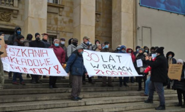 Prawo do mieszkania, nasza wspólna sprawa - protest lokatorów dawnych mieszkań zakładowych popierany przez Nową Lewicę.