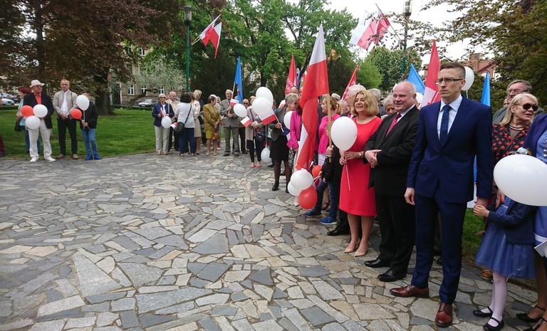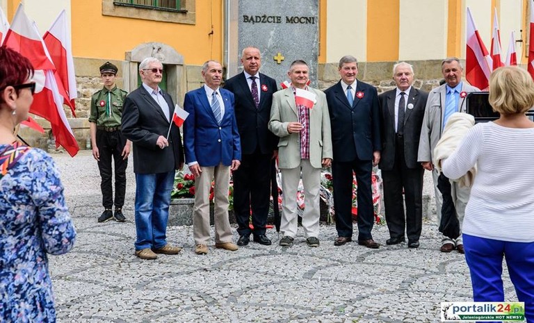 Obchody rocznicy Konstytucji 3 Maja w Jeleniej Górze. Przewodniczący SLD w Jeleniej Górze i jednocześnie Wiceprezydent Miasta Piotr Paczóski wraz z delegacją Związku Żołnierzy ...