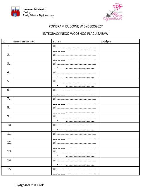 Jest to wspólna inicjatywa Agnieszki Lukowskiej - przedstawicielka rodziców dzieci niepełnosprawnych, Moniki Kani - Stowarzyszenie Bez Ograniczeń, Ireneusza Nitkiewicza - Radengo Rady Miasta i szefa SLD oraz Zbigniewa Welenca - sekratarz Rady Miejskiej SLD.