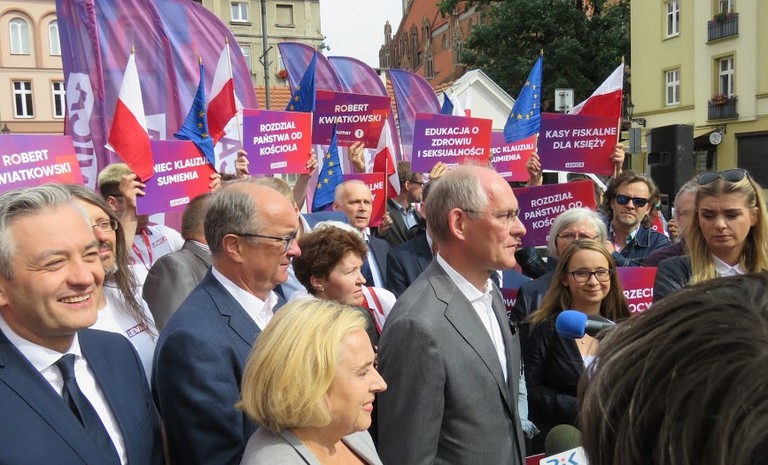 mieli okazję spotkać się z liderami partii Lewicy, którzy przyjechali specjalnym autokarem w barwach kampanii,