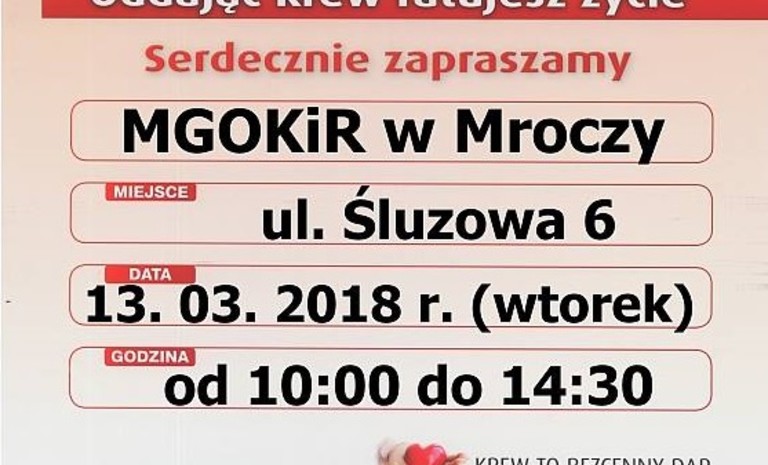 13 marca 2018 r. SLD w Mroczy już po raz XXIII zorganizował Akcją Oddawania Krwi. Podczas wydarzenia w budynku Miejsko-Gminnego Ośrodka Kultury i Rekreacji zarejestrowało się 28 Dawców, z których krew udało się oddać 22 osobom. Łącznie oddano 9,900 ml krwi.