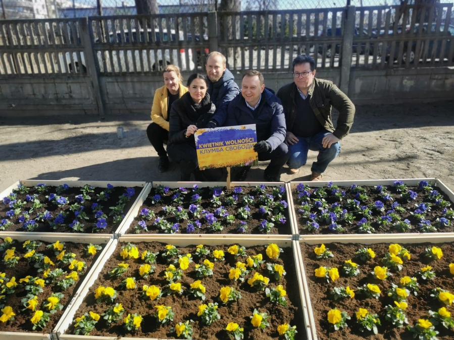 “Od pierwszego dnia pomagamy, wspieramy, uruchomiliśmy akcję Pomocna dłoń dla Ukrainy, w ramach której można było przekazywać dary, dysponujemy bazą mieszkaniową, świadczymy bezpłatną pomoc prawną, a obecnie przygotowujemy wyprawki dla dzieci z Ukrainy. Kwietnik Wolności to dodatkowy pomysł, dla uczniów, którzy są w tej szkole, żeby podczas przerwy, podczas zajęć na świeżym powietrzu przyszli i zobaczyli ten nasz gest solidarności, żeby zobaczyli, że Łódź i Polska są dla nich drugim domem, domem na czas tej rosyjskiej agresji” - stwierdził poseł Tomasz Trela.