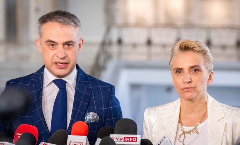W Sejmie było dziś gorąco. Podczas wystąpienia premiera posłowie Lewicy Tomasz Trela oraz Krzysztof Śmiszek wywiesili transparent z napisem „834 dni bez pieniędzy z KPO”. Po ...