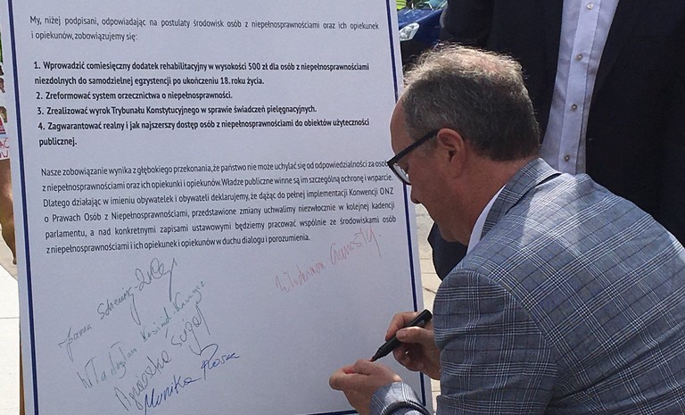 - "Pakt solidarnościowy" zawiera cztery postulaty na rzecz osób niepełnosprawnych, do których spełnienia zobowiązują się wszystkie partie opozycyjne. Są to: wprowadzenie comiesięcznego dodatku rehabilitacyjnego ...